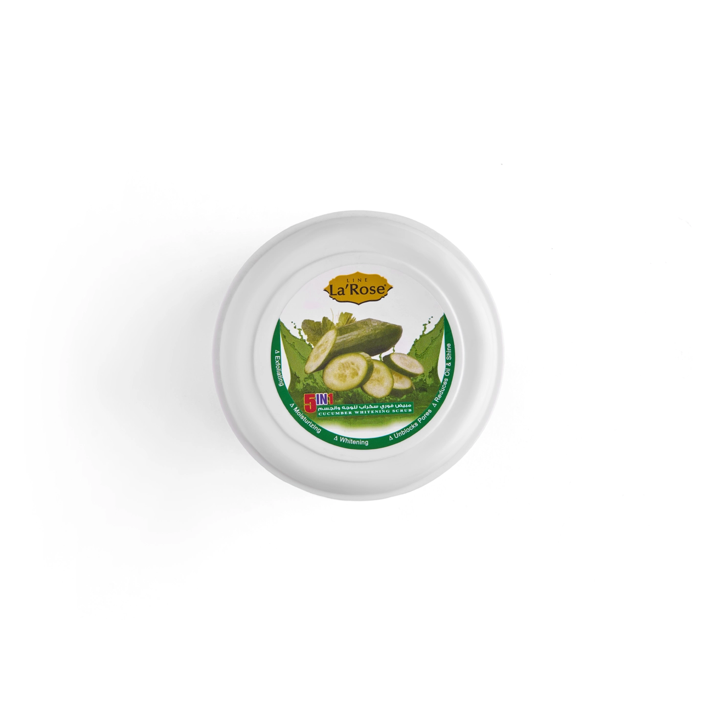 Experience the soothing touch of nature with LINE La Rose Cucumber Whitening Scrub. This luxurious 5-in-1 formula deeply cleanses and gently removes dull, dead skin cells, revealing smoother and brighter skin.